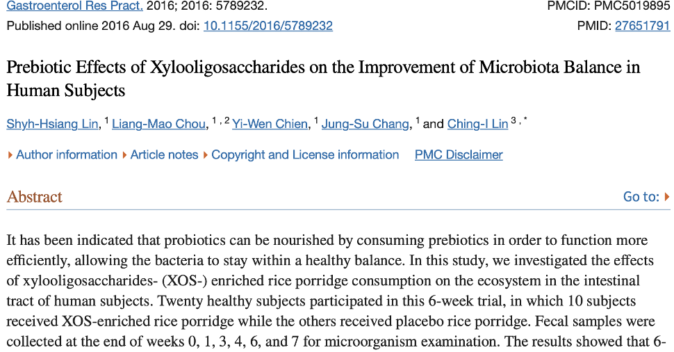 “結論として、XOSを含む米粥150gを6週間毎日摂取すると、腸内細菌叢のバランスが改善した。これは、XOSの機能性成分としての有効性を示している。これはまた、プレバイオティック化合物としての役割に関連して、機能性成分としてのXOSの有効性を示している。”