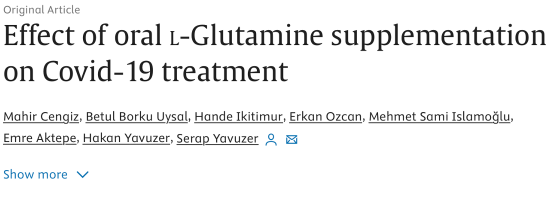 「L-グルタミンのような栄養補助食品は、特に炎症反応の抑制によって免疫系を高める。我々の結果は、Covid-19感染症の初期に通常の栄養補給にL-グルタミンを経腸的に追加することで、入院期間が短縮され、ICUの必要性が少なくなる可能性を示唆している。」